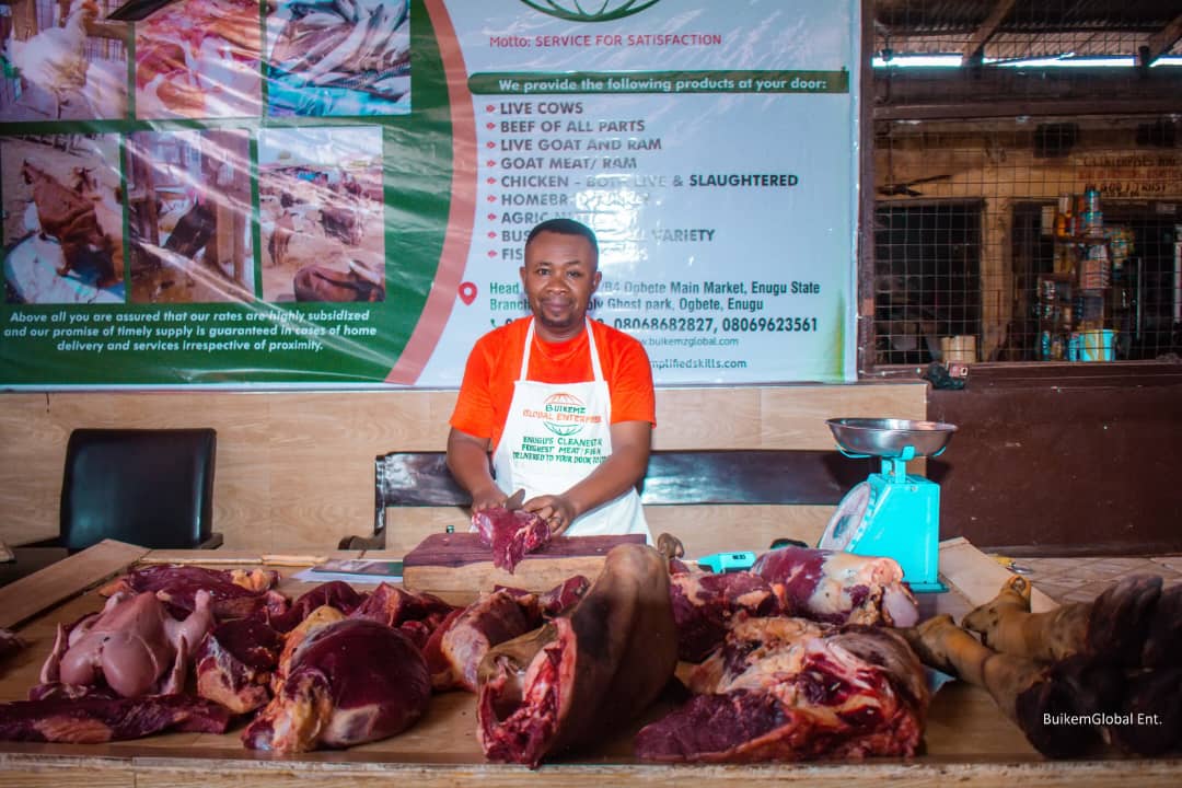 We added fresh meat section to our supermarket because of BUIKEMZ. They supply us chilled cuts every morning — beef, goat meat, ponmo, and offals. Customers love the quality and keep coming back. Their POS service at the abattoir is also very useful when I need cash.